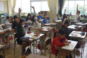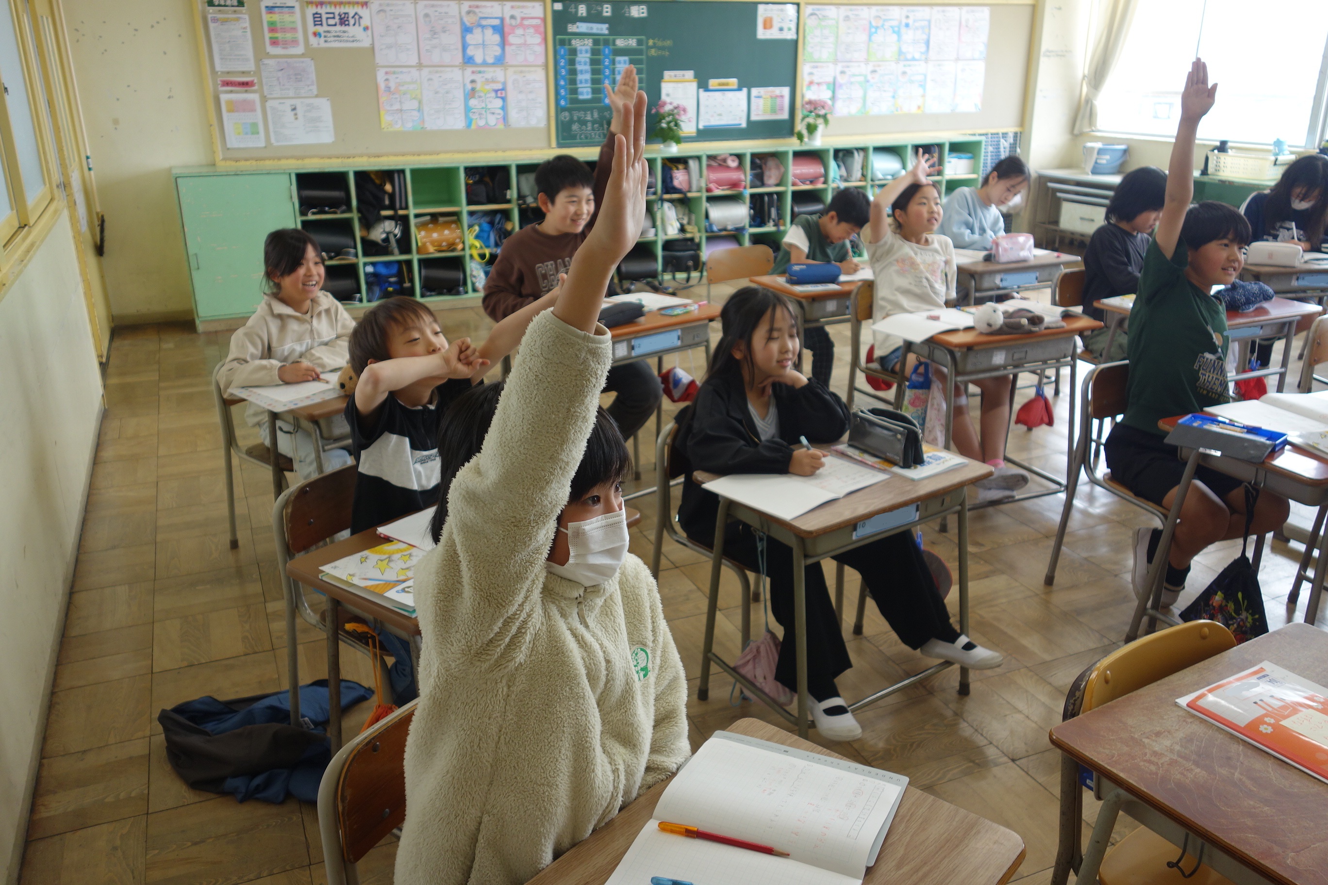 大きな数の計算 4年生 2026.04.24 4年生の算数は、大きな数の計算に挑戦しています。100×100が1万になることや、1万×1万が1億になることに着目して、計算の仕方を考えました。みなさん、基本が分かると、とても意欲的に挙手して発言していましたね。