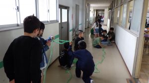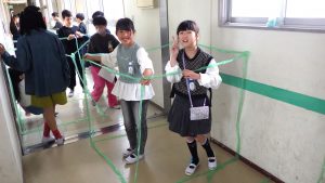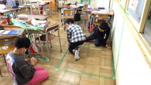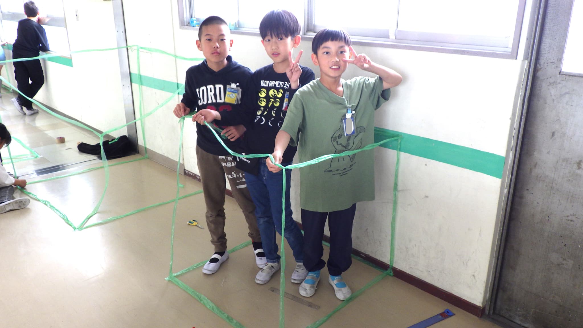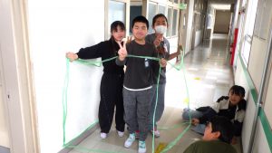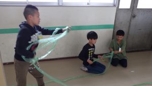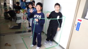 タフロープを使って1㎥を作りました。班のなかまで協力して作りました。