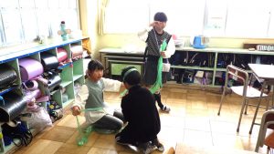 1㎥の中に何人入れるか挑戦している子たちもいました。