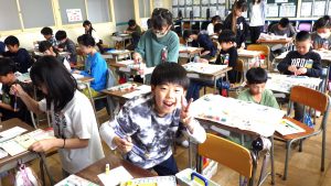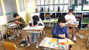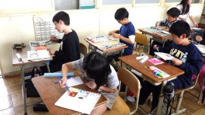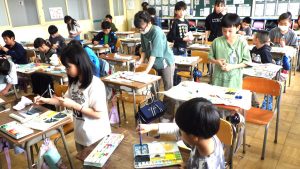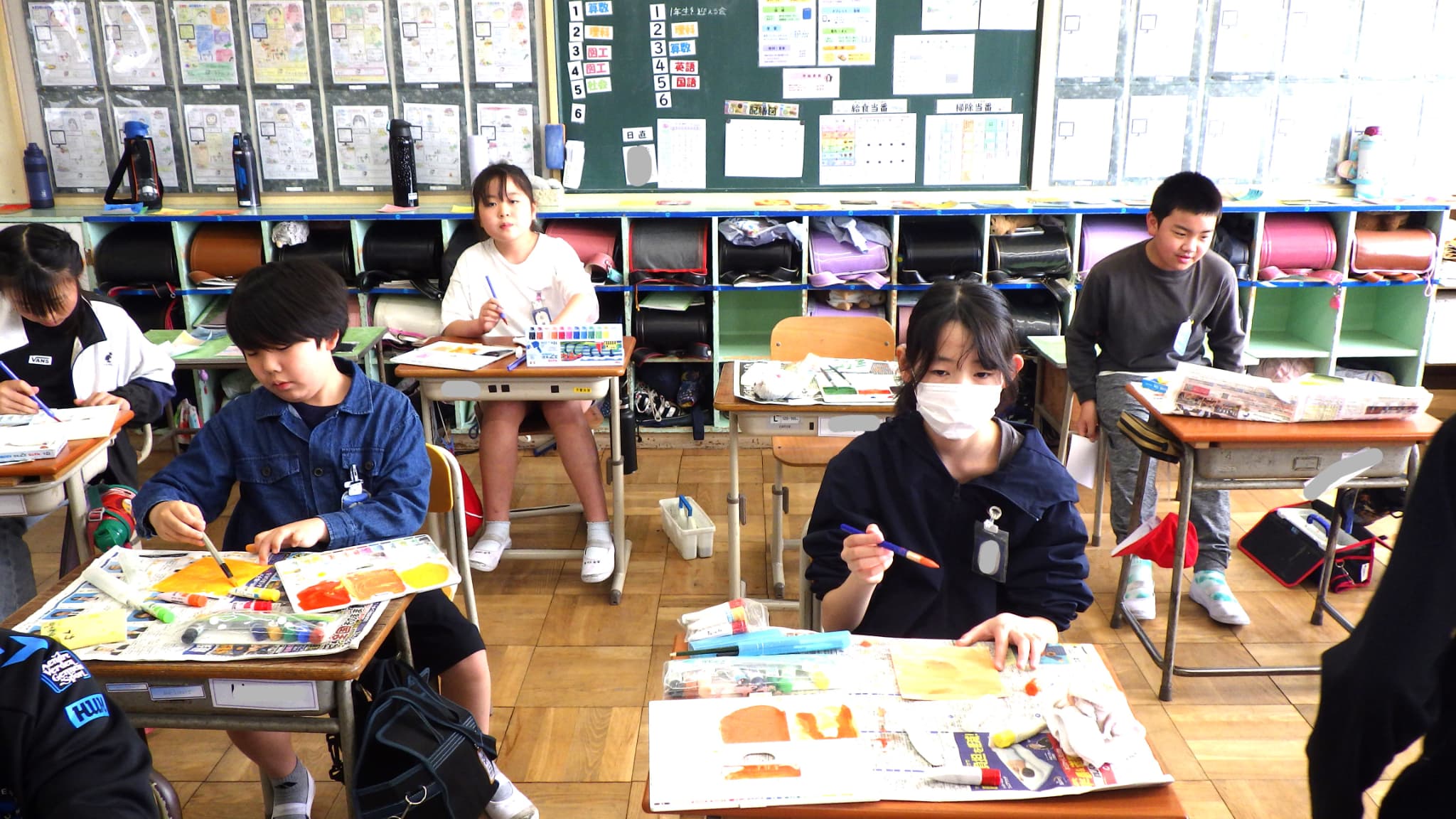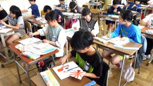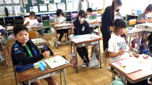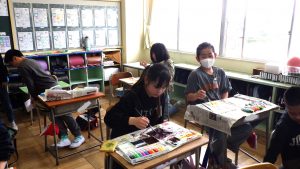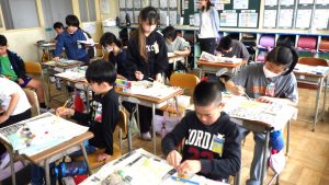 5年生 図画工作 5年生 2026.04.24 心のもよう 人間には様々な気持ちがあります。 その中から「うれしい・悲しい・おどろき・怒り」の4つの感情を絵に表しました。 どんな色、模様がいいかを考えながら塗り進めていました。