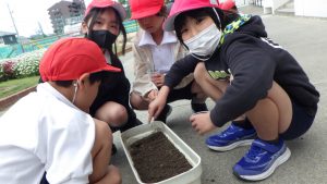 4年生 理科 ~今週の様子~ 4年生 2026.04.24 今週の理科では、春になってあたたかくなると、植物や動物の様子がどのように変わっているか、学習を進めていきました。 晴れた日には、運動場に観察に出たり、ヘチマの種を植えたりしました。 これから成長していくヘチマが楽しみですね。