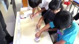 3年生 理科 つくってあそぼう② 3年生 2021.03.05 色を塗ったり絵を描いたりした紙皿を組み立てて、「かざわ」を完成させました。下敷きで風を送るより、息を吹きかけた方がよく進むよ、と言いながらどちらがよく進むか競争する姿も見られました。