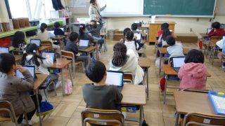 1年生が生活アンケートに取り組みました。学校行事に進んで参加したかどうかや授業等で自分の思いや考えを仲間に伝えたかどうかなどを振り返って答えました。アンケートの回答は、担任の先生に操作の説明を聞きながらタブレット端末で行います。1年生でも多...