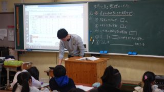 5年生の算数は、図形の学習をしています。この日は、円を使って正六角形をかく方法をみんなで考え、出し合いました。円の中心から間の角が60度になる補助線を引く方法や三角定規の60度の角を使う方法、コンパスを使う方法など、いろいろな考え方がありま...