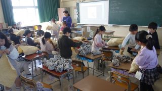 2年生の図画工作は、紙をくしゃくしゃにすることを楽しみながら感触やできた形から作品を発想する立体物の制作に取りかかりました。まずは、紙をくしゃくしゃにすることがとても楽しそうでした。ここからどんな発想をするのか、楽しみですね。